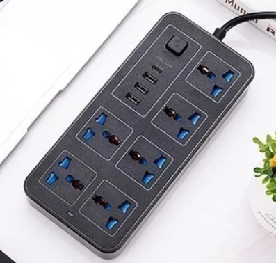 Universal Power Strip Extension Plug Power Socket Electric Sockets Extension Cords USB C + 3 USB Port 6 – Black