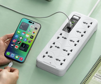 3 USB 8Ports 1TYPE-C Universal Power Strip Extension Plug-White